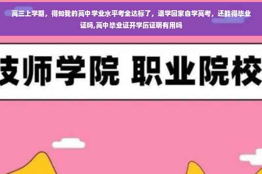 首先第一个问题,高中毕业证书是高中学历的凭证,不参加考大学也不影响高中毕业。只要参加高中学业水平测试,并且全部合格就可以拿到高中毕业证。