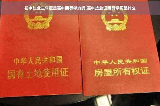 初中毕业三年不能算是高中同等学历。初中毕业并拿到毕业证,只能算初中学历,要拿高中毕业证才是真正的高中学历,要拿到高中毕业证,必须到正规而且国家承认的高中学校学习满三年,并经过考试合格后,才能拿到高中毕业证。