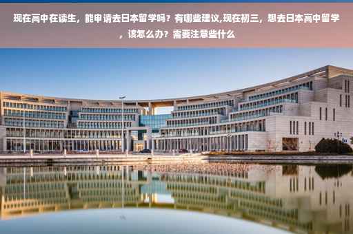 1、办理日本留学的基本条件是,在国内接受过12年的教育。现在初三,一定要读满十二年书,并且取得毕业证书!这是办理日本留学的前提。另外根据留学的目标,是读大专、大学、研究生还是其他专门学校短期大学等,来确定自己在国内时应该怎么办。目标是大学或研究生的话,最好能读高中,并参加高考,取得高考成绩。