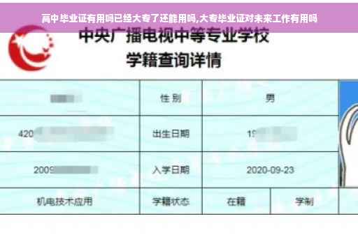 到此,以上对于高中毕业证有用吗已经大专了的问题就介绍到这了,希望介绍关于高中毕业证有用吗已经大专了的3点解答对大家有用。