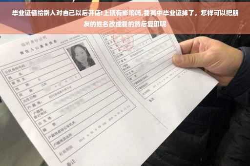 高中毕业证掉了,最好不要把朋友的姓名改成自己的, 高中毕业证书由省教育厅统一管理,省、市两级教育主管部门审查、验印,毕业证书一律于毕业当年颁发,不予补发。但教育局可以办理基础教育学校毕业证书遗失证明,具体程序如下:(1)本人到原毕业学校查核毕业证书存根或出具证明;(2)本人登报声明原证遗失作废;(3)本人持证明、报纸、照片等材料到市教育局基础教育科申报;(4)教育局核发遗失证明。 如果只是出国留学需要,到学校开具高中毕业证明及高中三年学习成绩后,再到公证处做个公证也就可以了。