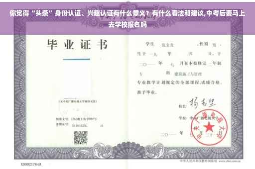 (一)站在个人角度看,头条个人身份认证,兴趣认证,我认为没有实质性的意义,为什么?因为,能认证工民身份,最权威的是公安机关,头条没有哪个权利,有权给头条号资职认证的是,我们的党政机关,他们才是最权威认证的,所以,我认为头条对工民身份认证,资职认证,己经超过了公安,党政机关的权利,对于自媒体工民来说,亳无半点意义。