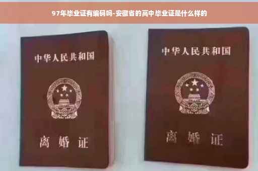 在我国,所发放的具有法律效力的证书均有编号,尤其是毕业证书。97年毕业证书同样有编码,其编码数字有年限、学校代码、专业代码、学号等几组数字组成。院校规模较小的,其毕业证编码也由年限、学籍号(含学校代码、班级序号、学号构成的)组成的。如学籍号为1101(校码)03(班级号)18(学号)的毕业证编号为9711010318。