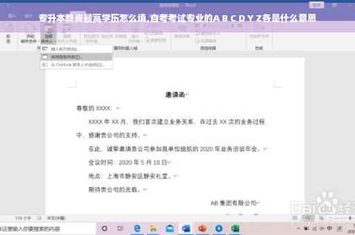 这些字母代表不同的学历层次,A,C代表的是专科专业,B,D代表的是本科专业(大自考),Z,Y代表短线专业(就是公共课统考,专业课学校自己出题,俗称小自考)。比如打算自己报名自考本科,那就要选择B,D代码的专业了,其他同理。自考专业代码的含义就是通过代码来分类出专科、本科和专业。自考的专业代码和全日制本科专科的专业代码并不一样,所以考生不能讲自考的专业代码和全日制的作为对比,因为两者根本不是一个系统的。不过在自考免考中会用到专业代码,只要课程名、专业代码和考生全日制学历的专业就可以免考。即使专业不一样也是可以免考的,所以自考的专业代码还有免考的作用。扩展资料:考生可参考各省的考试计划,考生结合自身实际情况选择专业。