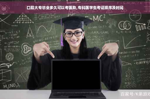 不管是大专毕业生,中专毕业生还是本科毕业生,都需要毕业后一年才可以报考执业医师资格证。其中,口腔医学大专毕业生和中专毕业生毕业一年后报考的是执业助理医师,口腔医学的本科生毕业一年后报考的口腔执业医师。这一年是需要一个正规口腔医疗机构给你开具一个试用一年的证明。