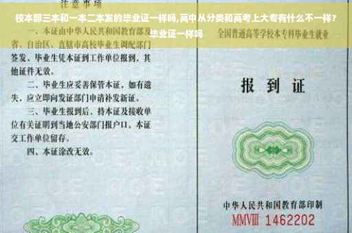毕业证是一样的。三本与一、二本都是属于“普通高等学校”教育系列,本科中,除了专升本的学生拿的本科毕业证上面会标注一个“专科起点”的小字以外,一般的本科生最终拿到的毕业证上面绝对不会出现“一本”“二本”“三本”的字样。二本和三本的区别在于: 1、高校性质不同 二本高校主要是省属本科院校和普通公办本科院校,综合实力通常低于在高考进行本科一批录取的院校; 三本高校一般为独立学院和民办高校。 2、获得财政资助不同 二本高校大都是公办高校,只要是公办高校就可以获得财政资助,但是三本院校都是独立学院和民办高校,都是不能够获得财政资助的。 3、社会认可不同 二本高校由于以公办高校居多,因此社会认可度高。三本高校由于以民办性质为主,因此社会认可度不高。
