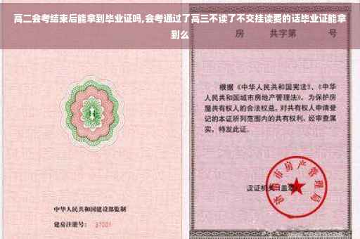 高二会考结束后,并且每科都过了才可以拿到毕业证。高二会考就是高中毕业考试,要等会考分数出来后才能拿到毕业证。虽然现实中要到高三结束才发,但如果高三不在学校或者不打算参加高考的人可以申请拿毕业证了。