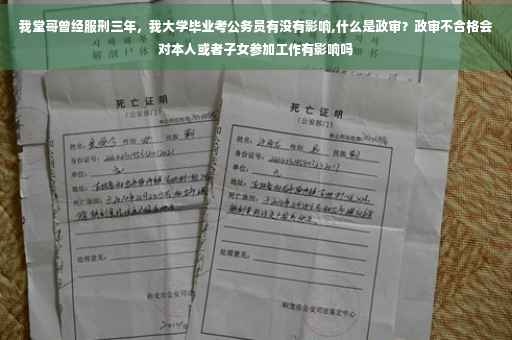 二、其次,一般来说,直系亲属有犯罪记录才会影响家人报考公务员考试的。你的堂哥不属于你的直系亲属,所以不会有影响。公务员政审一般都是主要在于你的个人情况还有父母的一些情况。政审主要是你个人或者对你有重大影响的直系亲属。现在不是封建社会,现代早就废除以前的一人违法,亲属一起的说法。报考政法机关的稍微审查严格一点。但是楼主只要没有犯罪记录,直系亲属没有特别严重的犯罪行为,是不会影响你的。
