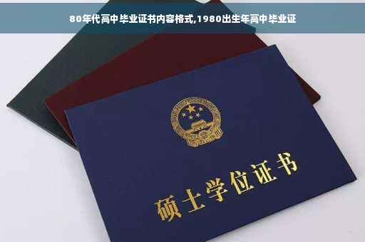 80年代高中毕业证是塑料红皮外壳,内容是:一边是毕业证书,某中学某届第(4位数),学生某,性别X,现年╳岁,系XⅩ省ⅩX县(市)人,于一九八X年七月在我校高中部学习期满,经考试成徒合格,准予毕业。此证;另一边是照片(黑白1寸,压钢章),毕业成绩(小表格,各科成绩),下面是毕业中学公章、校长章及毕业日期。