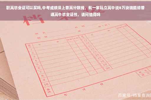 中考成绩没上普高分数线,有一家私立高中说8万块钱能给普通高中毕业证书,请问值得吗?