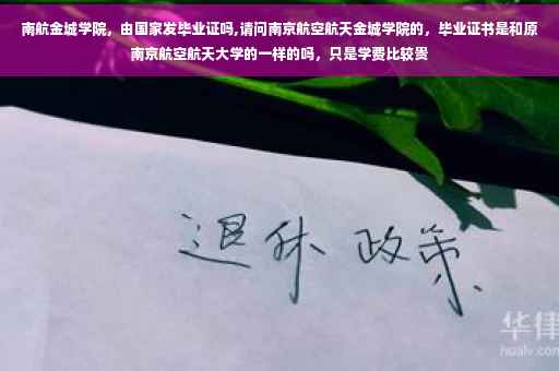 南京航空航天大学金城学院颁发文凭根据国家教育部规定,从2008级入校的学生起,学习期满,修满学分,且成绩合格,颁发“南京航空航天大学金城学院”普通全日制本科毕业证书;符合学士学位授予条件的,颁发“南京航空航天大学金城学院”学士学位证书