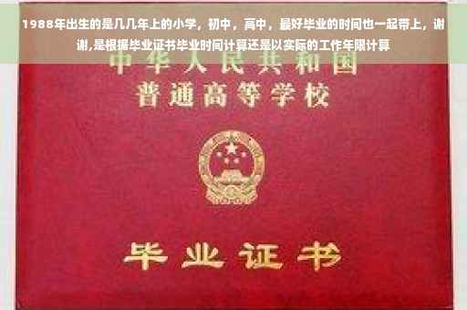 严格按照小学七年级和九年制义务教育的九年级,不考虑诸如重读年级等特殊因素,1988年出生的人应该是1996-2002年到小学,2002-2004年到初中高中,并于2004-2007年升入高中。在1990年代,某些农村或偏远地区可能仍实行五年制小学教育制度。当然,这很少。