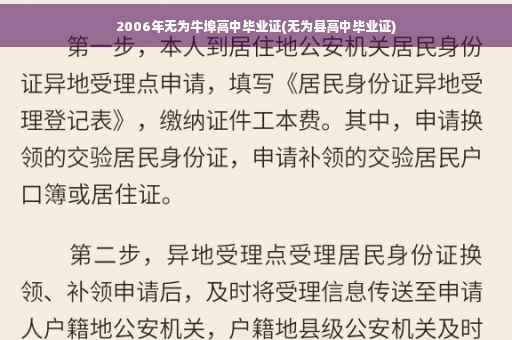 到此,以上对于2006年无为牛埠高中毕业证的问题就介绍到这了,希望介绍关于2006年无为牛埠高中毕业证的5点解答对大家有用。