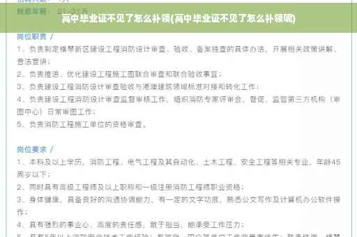 到此,以上对于高中毕业证不见了怎么补领的问题就介绍到这了,希望介绍关于高中毕业证不见了怎么补领的6点解答对大家有用。