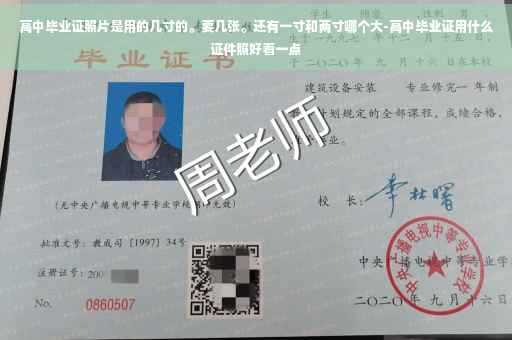 高中毕业证照片应该用的两寸的,红底,要1张就够了。不过高中毕业证不是全国统一的,有时候全市的各个学校都不一样,所以要根据学校的要求。2寸比1大。