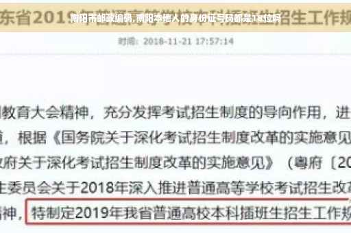 南阳市身份证号码的前六位数字,所代表的是地址码,表示南阳市身份证编码对象常驻户口所在县、区的行政区代码。