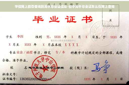 高中的毕业证在网上是查不到的。学信网只记录大专及以上高等教育的学历信息,只有好好学习,步入大学之后,学校会登记你的个人信息之后,才可以在网上查询到的。高中的毕业证差不多和中专的教育属于一个等级,所以在网络上面是查询不到的。因此我们在高中期间要好好学习,每天按时完成学习任务,把每个学期的考试,都顺利通过那拿到高中毕业证。
