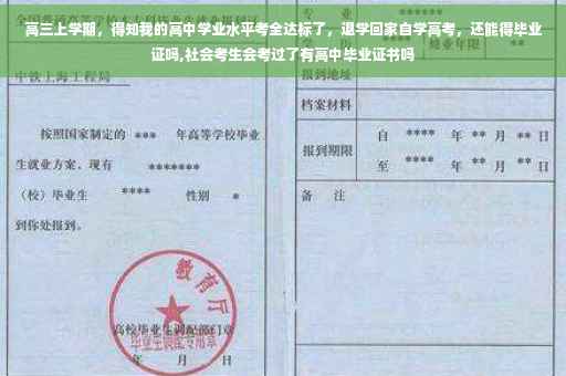 没有,因为每个学生都是有学籍的,社会考生是不会有学籍的,即使考过了,也不会有高中毕业证。会发完成证书,证明你具有高中毕业的水平,也可以参加普通高考,参加完普通高考如果成绩达到录取通知要求,也同样可以被录取。加油吧!只要学习都是有用的