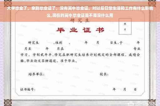 没有什么影响吧,应该。现在出去找工作都看的是大学毕业证。就是在社会上,大学都毕业了,高中毕业当然是不言而喻了。我已经毕业了,没发现哪里要高中毕业证,而不要大学毕业证的。所以你就放心吧