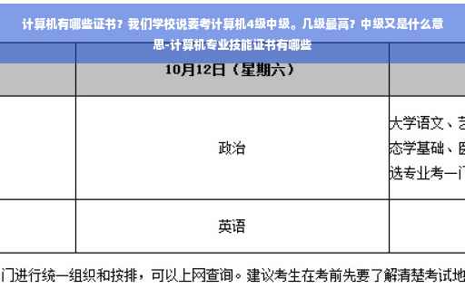 1。计算机等级考试,教育部旗下的考试,分1-4级。最高级是4级,对应的是计算机专业本科毕业的水平。考试分理论考试(笔试)和上机考试两部分,一般而言,笔试的应试准备比上机要轻松一点,上机考试有时还会受当时的情绪影响(紧张)。