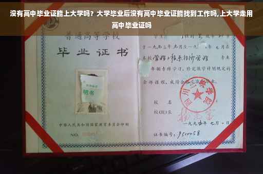 可以肯定的是没有高中毕业证完全是可以上大学的,不论是大专还是本科都是可以上的,只要你参加了高考,有学校录取你。高中毕业证是不影响你以后的工作的。大学毕业证是一定要有的,如果没有大学毕业证,会影响你考研,对你以后找工作也有影响。