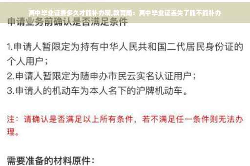 按照省教育厅规定,高中毕业证丢失、损坏一律不予补办,不能补发,只发学历证明。如需毕业信息等相关证明,可联系就读的高中学校给予开具。向毕业学校提出学历证明的申请,其与毕业证书有同等效用。申领学历证明的程序: