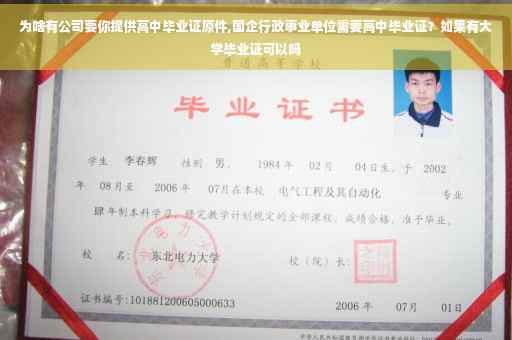 在现实生活当中,往往我们在哪个单位工作的时候要经常的填表,因为要建立档案的表格上一定会有关于学历的一栏,如果你的最高学历填的是高中的话,单位的会让你上交高中学历的原件。为什么单位要收取学历的原件呢,其主要原因就是怕有的人是撒谎的,只要有了毕业证的原件,这个事情就可以坐实了。