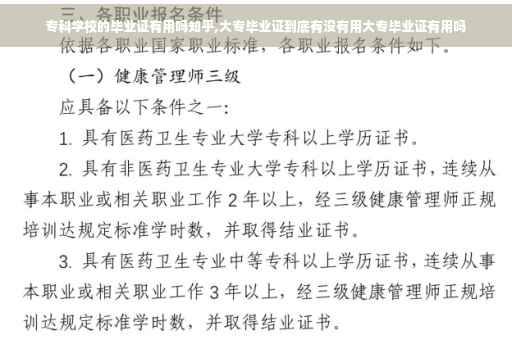 以上就是对于专科学校的毕业证有用吗的问题就介绍到这了,希望介绍关于专科学校的毕业证有用吗的2点解答对大家有用。