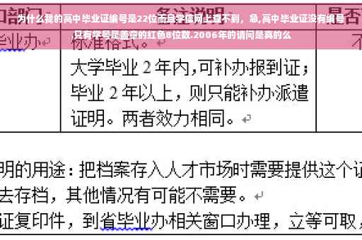 不同于高校毕业证制定的编码且能在学信网可查,高中毕业证无法在网上查询,一般是学校所在地区门编制,在学校留有备案。