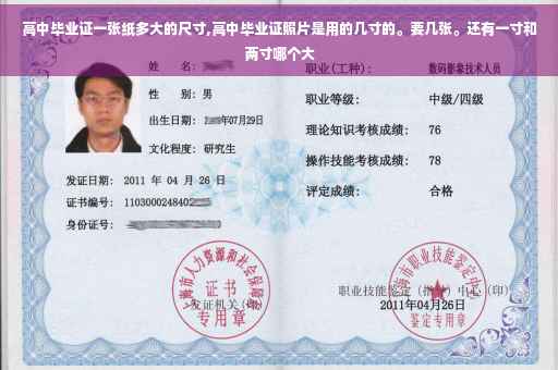 高中毕业证照片应该用的两寸的,红底,要1张就够了。不过高中毕业证不是全国统一的,有时候全市的各个学校都不一样,所以要根据学校的要求。2寸比1大。