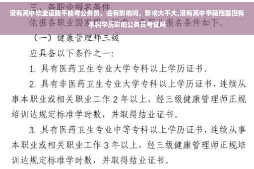 2、如果是指没有高中毕业证,且也没有其他学历,是不能报考公务员的,公务员要求的最低学历是大专。