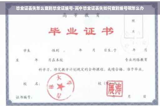 高中毕业证编号网上没办法查询,只能回学校找档案 学校一般有留底的,毕业证编号即是学号。高中毕业证遗失了只能回高中学校打毕业证遗失证明,上面必须要有 高中校名,毕业时间,学号,身份证号码,学校盖章。
