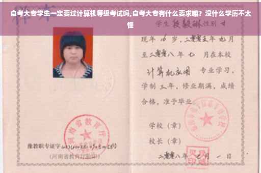 自考大专需要有高中毕业证或者初中毕业证,但是你的年龄要满18岁才可以去自考大专,这个考试相对于自考本科来讲,要简单一些,但是呢,也是每年的九月中旬左右报名,十月份考试,如果你通过了这次入学考试,那么两年半之后你就可以拿到大专毕业证了