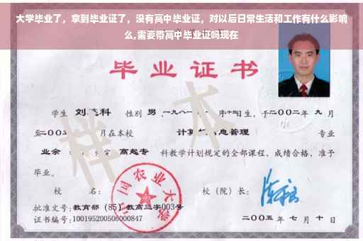 没有什么影响吧,应该。现在出去找工作都看的是大学毕业证。就是在社会上,大学都毕业了,高中毕业当然是不言而喻了。我已经毕业了,没发现哪里要高中毕业证,而不要大学毕业证的。所以你就放心吧