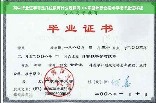 有的。一般证书编号都是一定他的规律性。高中毕业证的字号一般由十位数字组成的,前四位是代表年份,中间三位代表所在学校的代码,后三位代表该校的毕业人数。如张华同学是该校的高中毕业生,那他的毕业证号码是2022050231,所代表的含义是该生是2022年050是毕业学校的编码,231号码是该同学是该校第231位高中毕业生。
