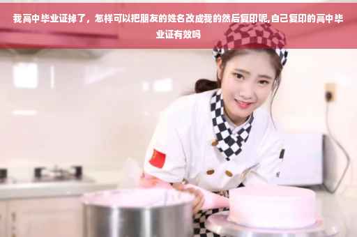 高中毕业证掉了,最好不要把朋友的姓名改成自己的, 高中毕业证书由省教育厅统一管理,省、市两级教育主管部门审查、验印,毕业证书一律于毕业当年颁发,不予补发。但教育局可以办理基础教育学校毕业证书遗失证明,具体程序如下:(1)本人到原毕业学校查核毕业证书存根或出具证明;(2)本人登报声明原证遗失作废;(3)本人持证明、报纸、照片等材料到市教育局基础教育科申报;(4)教育局核发遗失证明。 如果只是出国留学需要,到学校开具高中毕业证明及高中三年学习成绩后,再到公证处做个公证也就可以了。