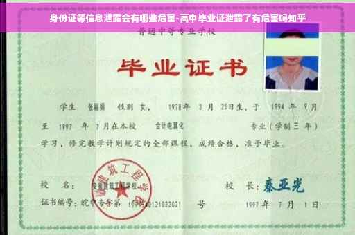 高中毕业证编号泄漏没什么危害,关键是身份证号码泄漏。如果再知道你的姓名+身份证号,就可以干很多事情,比如去搞个假的身份证,再去银行开户办信用卡,然后刷完以后不还钱,你就会有不良信用记录了,以后贷款什么的都很麻烦。