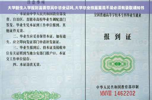 :通知书上会写的,不同的大学规定不一样,但是一般都不用带高中毕业证。拿着录取通知书,和身份证等必备的证件就好了