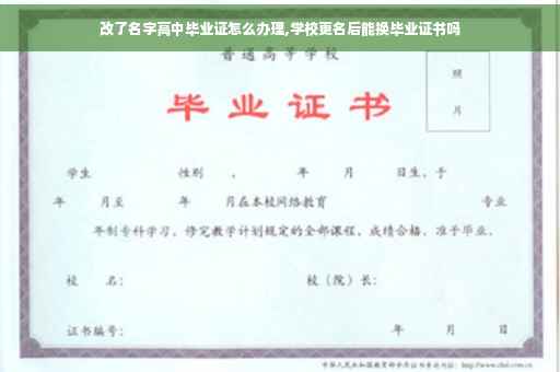 学校更名后不能换毕业证书。毕业的时候学校是什么名字?毕业证书就写什么名字。学校没有更换毕业证书的能力,国家也不允许。毕业证书是证明您在某个学校完成学业,成绩合格的证明。高中,大学等都会有毕业证书,公办的大学毕业证书在网上可以查到。