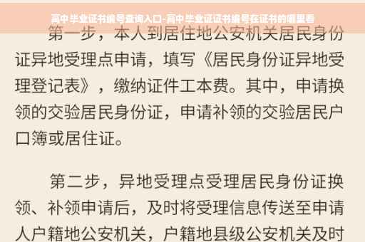 高中毕业证书编号是指高中生所获得的毕业证书上面的编号,高中毕业证书下面第一行就是。
