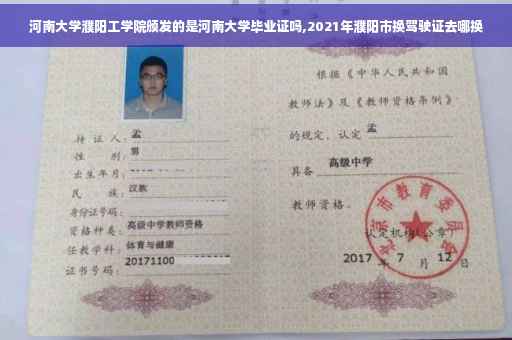 河南大学濮阳工学院颁发的是河南大学毕业证,河南大学濮阳工学院属于河南大学二级学院,被录取的学生经资格审查合格,即可取得河南大学学籍并由河南大学负责学籍管理,在河南大学濮阳工学院(位于濮阳市)学习生活。