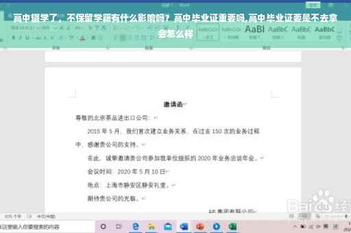 但是,如果高中毕业之后不再继续接受高等教育,那么高中毕业证就是至关重要的了,因为此时高中毕业证就是本人的最高学历证明,没有高中毕业证意味着学历就只是初中毕业,对于找工作会有很大影响。