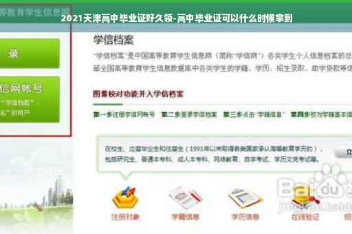 高中毕业证一般毕业当年的七月份即可发放,所以2021年的高中毕业证应该在七月份发了;高中毕业证需要学业水平考试测试合格才能取得高中毕业证书,如果考上大学并取得大学学位学历,,高中毕业证书意义就不算太,但没考上大学就特别有用。