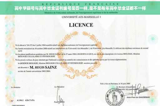 高中毕业证书编号 与学籍编号不一样。只要在网上能通过姓名、毕业证编号查到毕业证信息,就能证明存在其学历。不同的高校对于该毕业证书编号的称谓不同,有的叫做学校编号、学历证书编号、学历证编号、毕业证书号码、毕业证号码等等,只要是2001年以后毕业的,都可以在毕业证书上找到一个17位或者18位的数字,这个数字就是证书编号。