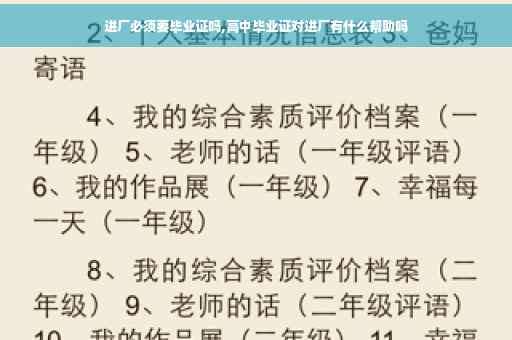 在进入厂公司工作时,一般需要提供相关的学历证明,包括高中文凭证书。因此,在进入厂公司工作之前,公司可能会要求你提供高中文凭证书的复印件或者原件进行核实。