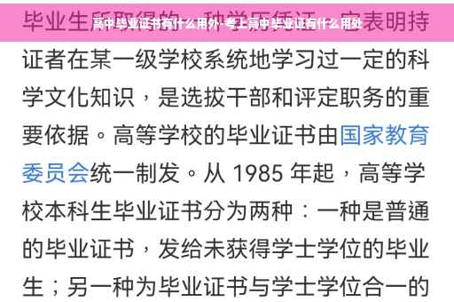 高中毕业证是学生在完成高中阶段的学习后获得的学历证书。虽然它不如大学或职业学校的毕业证书具有广泛的用途,但在某些情况下,高中毕业证仍然具有一定的价值。