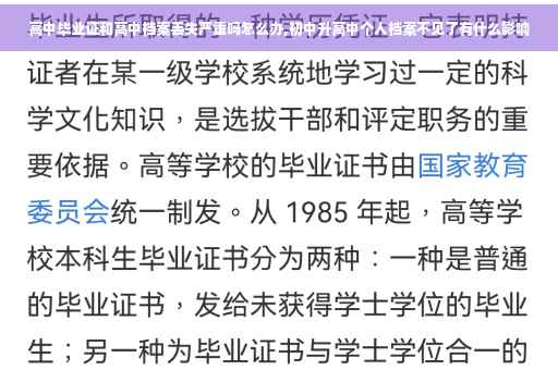 到此,以上对于高中毕业证和高中档案丢失严重吗的问题就介绍到这了,希望介绍关于高中毕业证和高中档案丢失严重吗的5点解答对大家有用。