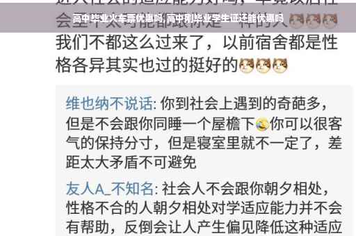 高中毕业生可以享受火车票的优惠政策。根据国家铁路部门的规定,高中毕业生在购买火车票时,可以享受10%的优惠。