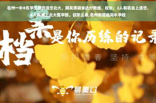 前段时间面对铺天盖地的《亳州一中8名学生放弃北大清华,选择其他院校》这样的新闻,我就是一直持怀疑态度的。当有人说他们为了理想的专业果断放弃清北是明智的选择,还有的人甚至说清北由此没落了。