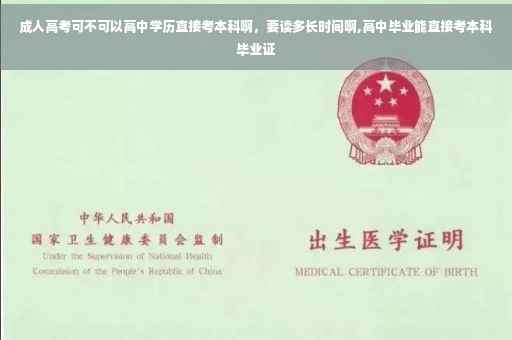 成人高考可以高中直接上本科,此种形式叫做高起本,高起本的学制是五年毕业。成人高考共有三种层次:1、高起专(学制2.5年),2、高起本(学制5年),3、专升本(学制2.5年)成人高考报考的人群主要是在职的工作人员,介于此情形,建议一般不要选择报高起本,因为高起本是五年毕业,在此五年中你的学历仍然是高中,只有等到你拿到了毕业证你才能说你是本科毕业。这样子时间太长了。你在工作中可能会用到学历考国家级资格证书、单位评职称、晋级,这种情况一般专科就够用了,所以建议应该先上高起专,如果专科毕业了,可以再接着报专升本